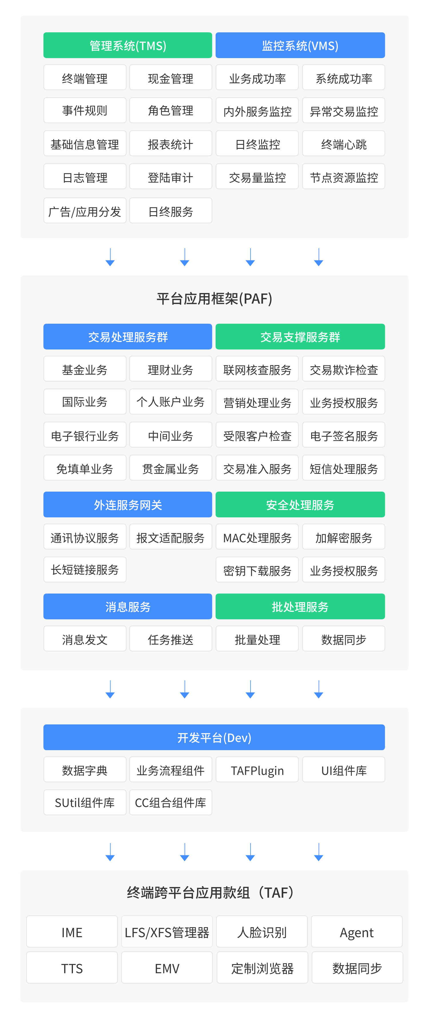 證通自主研發的面向金融領域的自主可控金融中間件平台,是基於(yú)Linux下的XFS服務中間件一TAP,通過構建統一金融終端中間件平台,實現接口的統一,從而讓金融機構更便捷的接入不同廠家不同型号的部件,同時,通過對國密等算法的支持,構建安全加密服務,保障信息存儲、傳輸的安全性,從而保證金融終端的穩定性、功能連續性、兼容性、靈活性、安全性,助力國産(chǎn)金融系統的安全、自主、可控。