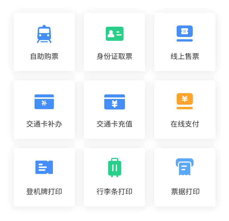 具備(bèi)二代身份證識别、車票打印、銀行卡支付、微信支付、支付寶(bǎo)支付、發卡等功能。