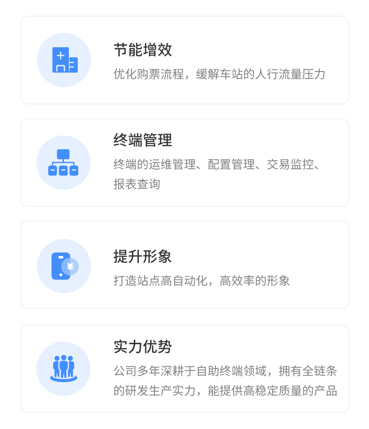 爲車(chē)站提供自助終端購(gòu)票軟件定制化服務和微信服務号搭建服務,實現線上、線下相融合的全方位客運服務。