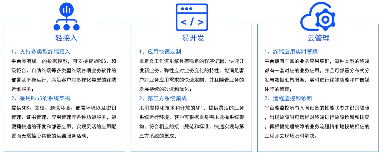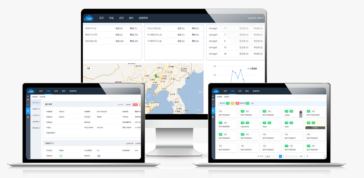 交易統計、終端地圖、應用管理、智能監控……功能按需定制,操作一目瞭然