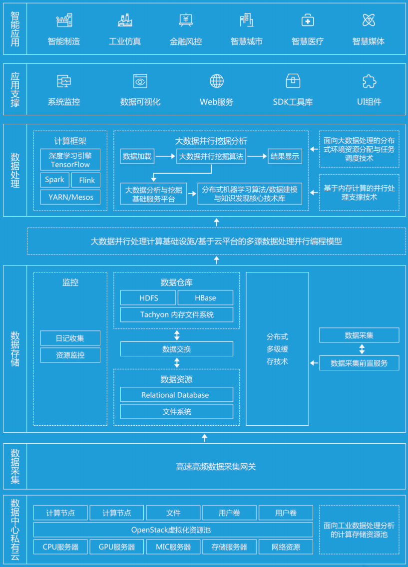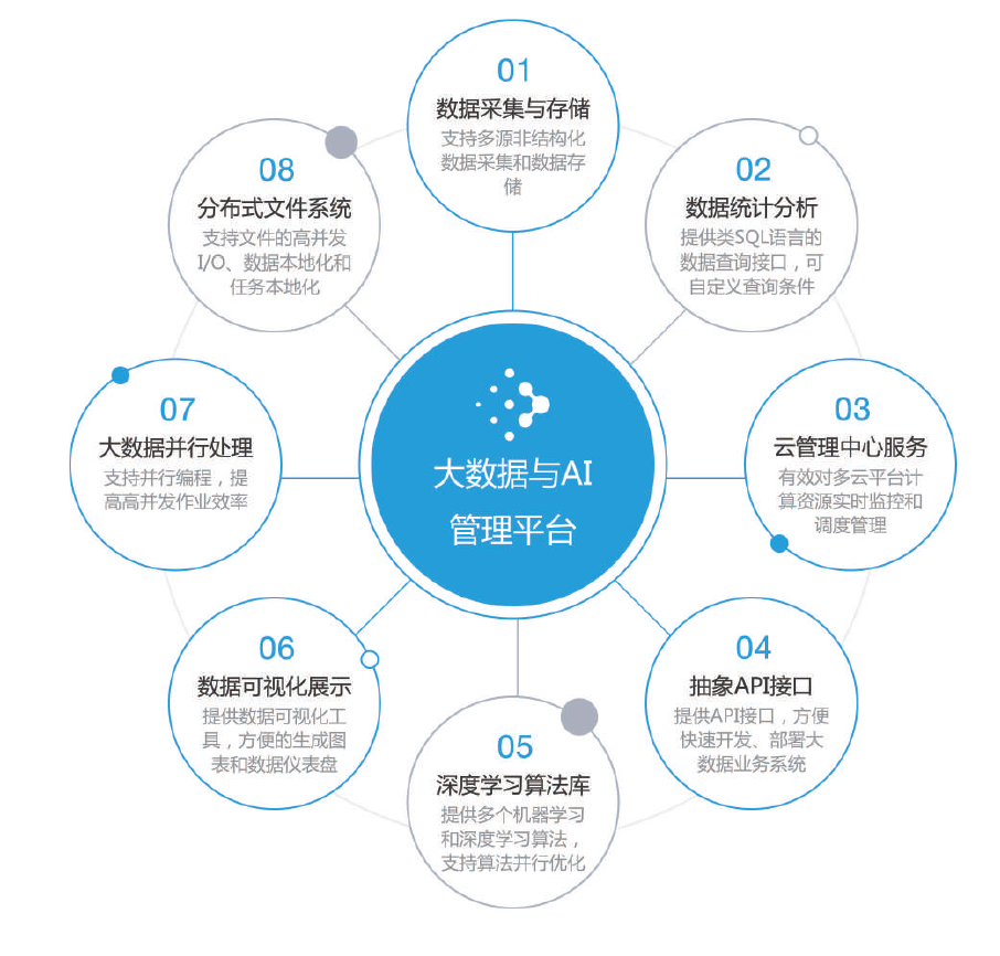 大數據管理平台作爲數據並(bìng)行處理與挖掘服務平台,提供雲管理中心服務、大數據存儲、數據分析、機器學習算法庫和數據可視化展示等一系列服務的數據通用處理平台,擁有高度抽象的編(biān)程SDK,能夠方便開發人員快速開發部署針對特定業務的大數據處(chù)理系統,同時能很好地支撐(chēng)新業務的新增需求,大大減少開發周期和開發費用。