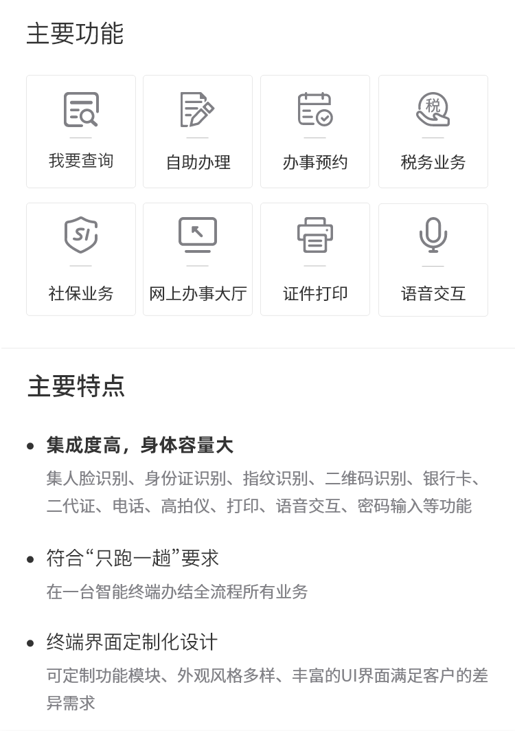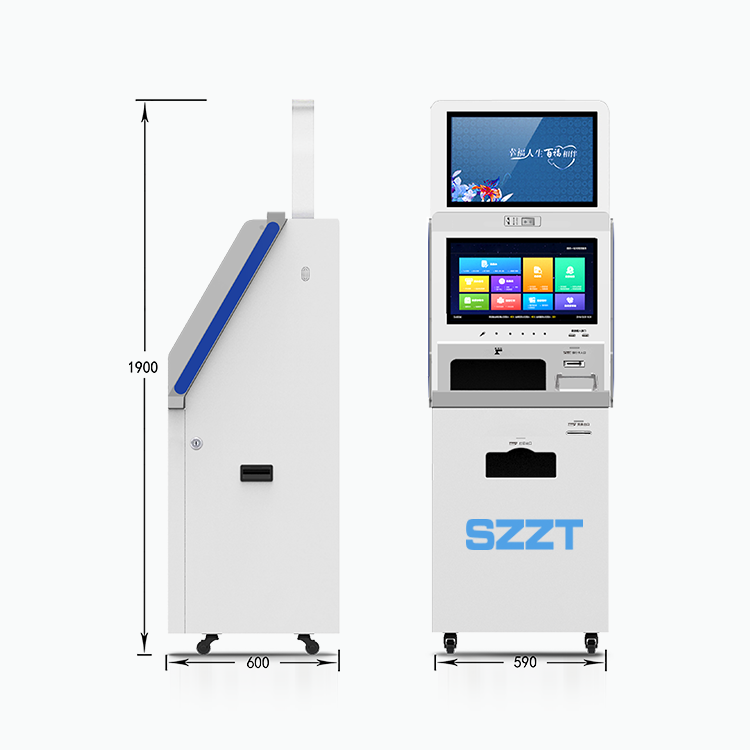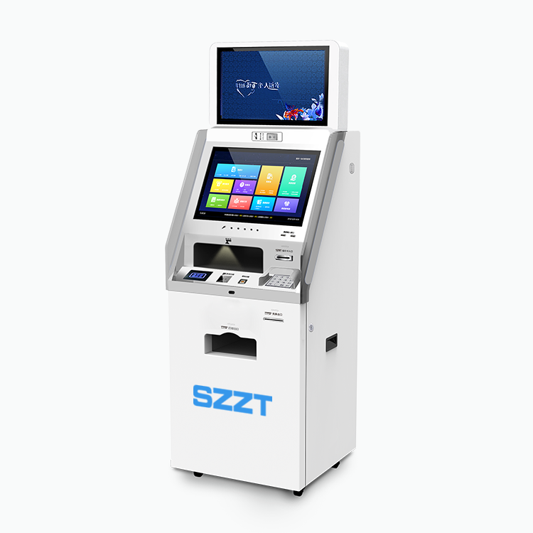 雙(shuāng)21.5寸屏幕-ZT2X-簡(jiǎn)系列,機身整體採(cǎi)用大面積白色,去除複雜,保留最基本的元素,側面的藍色線條點綴,賦予機身靈動,簡潔的外觀卻集成瞭(le)二代證、掃描儀、打印、MIC、高拍儀、銀行卡、密碼鍵盤等諸多部件,完成全流程業務。模塊與UI設計雙定制化,滿足客戶所有需求。