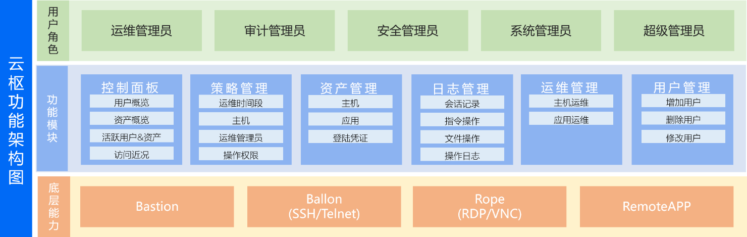 基於(yú)數據中心運維安全管理角度出發(fā),通過集中化運維管控、統一運維管理、身份認證與權限控制、運維訪問合規性控制、運維過程實時監看、運維過程全程審計、自定義應用發(fā)布等功能,爲數據中心運維構建一套完善的事前預防、事中監控、事後審計的安全管理體系。