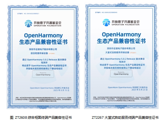 在金融科技快速發展與國産(chǎn)化替代加速推進的當下,技術創新與系統安全成爲金融行業關注的焦點。近日,深圳市證通電子股份有限公司(以下簡稱(chēng)“證通”)迎來重大喜訊,其綜合櫃面終端、大堂式自助服務終端等多款智慧金融廳堂一體化産(chǎn)品方案,成功通過 OpenHarmony 5.0.2 版本的兼容性測(cè)評,並獲頒OpenHarmony生态産(chǎn)品兼容性證書(shū)。這一成果不僅(jǐn)彰顯瞭(le)證通在金融科技領域的深厚技術實力,更爲金融行業的數字化轉型注入瞭(le)新的活力。